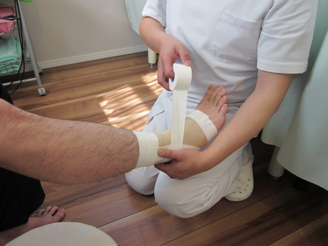 テーピングは痛みの原因となる場所を圧迫することで痛みを和らげたり、関節を固定することにより動きを制限するなどの特性があります。