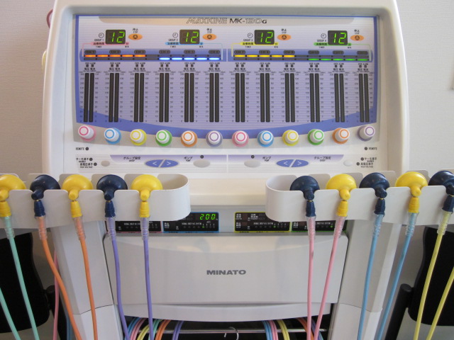 低周波は、痛みを抑える神経を刺激したり、萎縮した筋肉を刺激したりします。