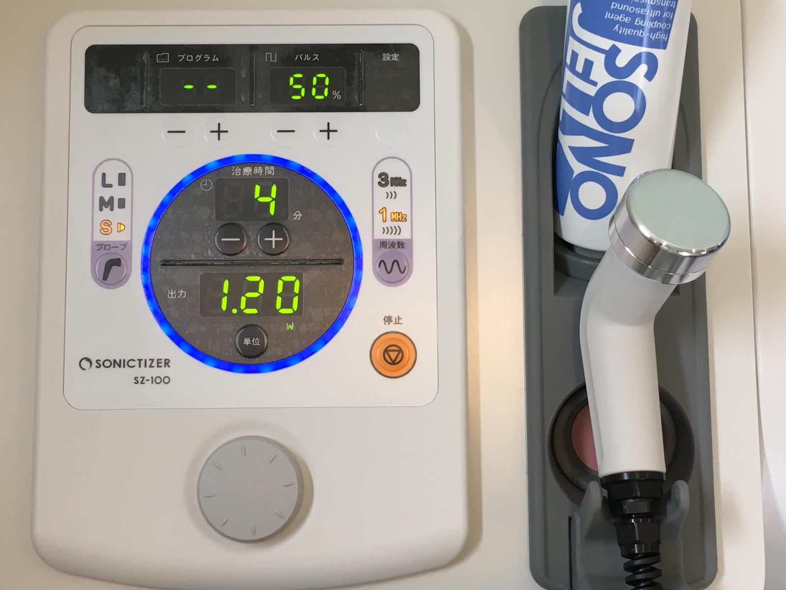 超音波が吸収される際に生じる熱の温熱作用で、体の深部まで超音波が到達し、患部を立体的に直接温める立体加温が行える機器です。